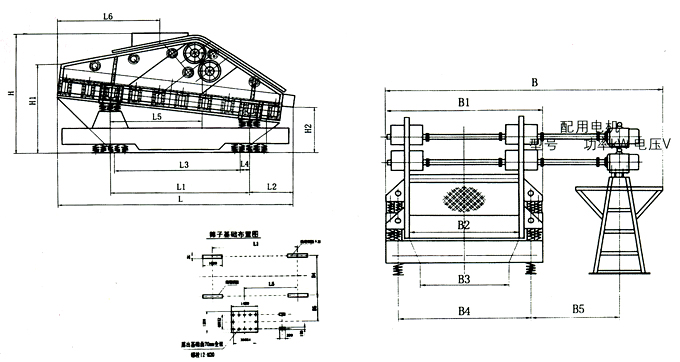 該系列振動(dòng)篩由篩箱、振動(dòng)源、支撐彈簧、隔振架、二次隔振彈簧、電動(dòng)機(jī)及其支架等組成。